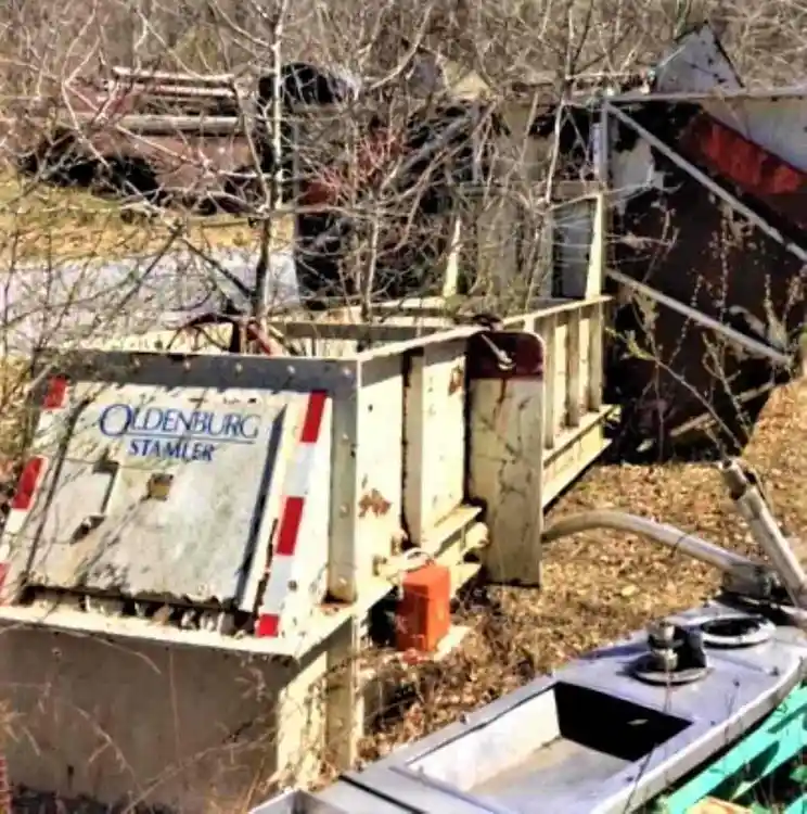 Used Stamler Oldenburg conveyor, model BF-2U-0-53F, In slightly used condition for 7 days Includes truck dump hopper with folding sides. Hydraulic pump and 15 horsepower motor included