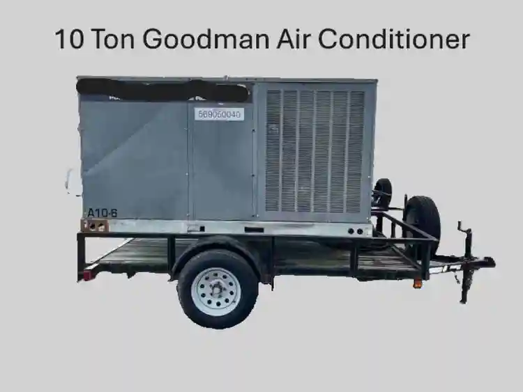 GOODMAN CPC120 air conditioners, year 2012 and 2010 model. Perfect for cooling and climate control needs. Ideal for commercial settings. Can be unbolted from the trailer for mounting and the trailer can be sold. Buy one or two at your option.